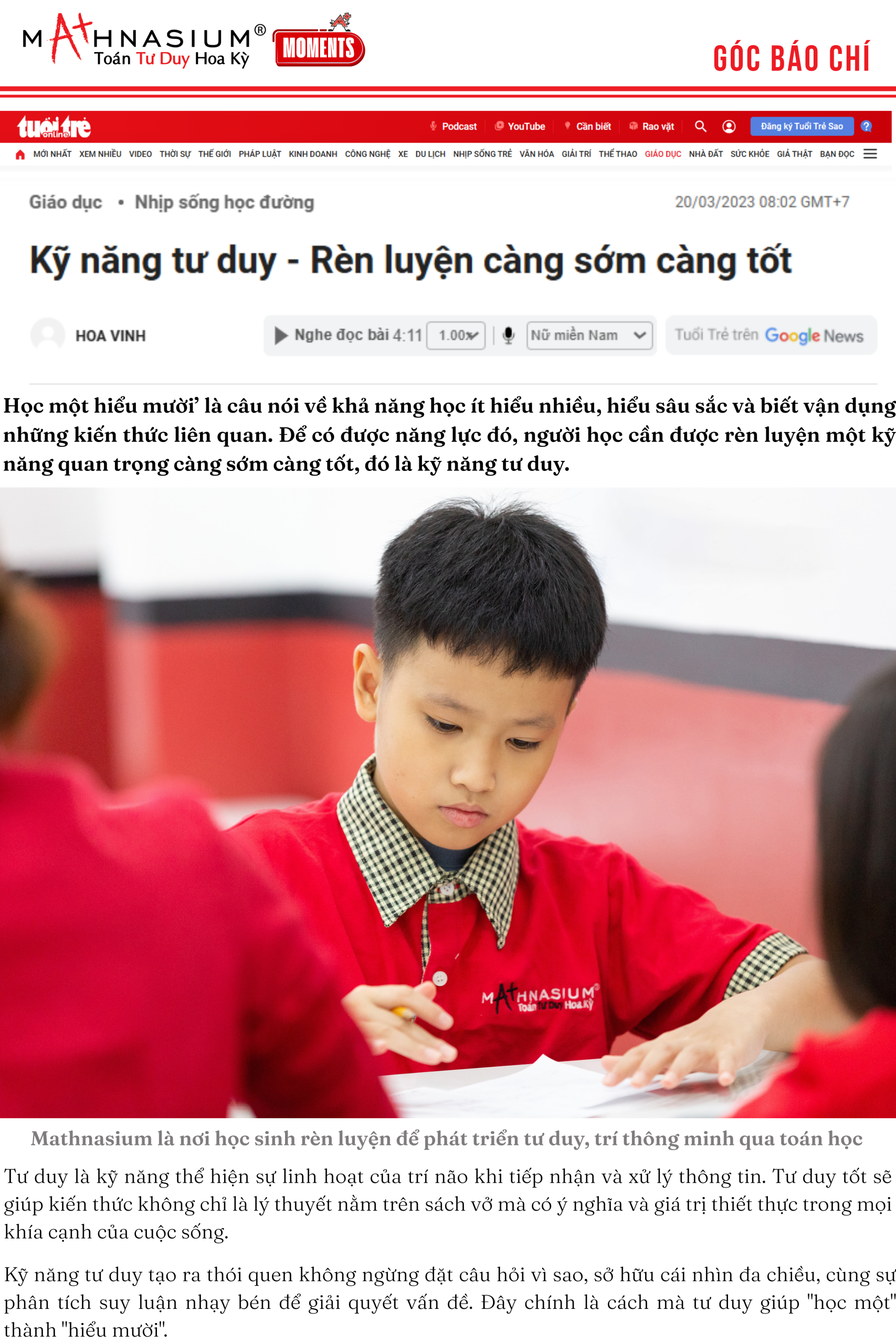 Link báo: https://tuoitre.vn/ky-nang-tu-duy-ren-luyen-cang-som-cang-tot-2023031716085382.htm?gidzl=YZaPQ1mOAakA9nfc6G0YHOeY4Mq02YP7nIz1R0TR9KERB11jMmad4vvzHpWE2dT1poX7FMEa4G4Q71eeGm