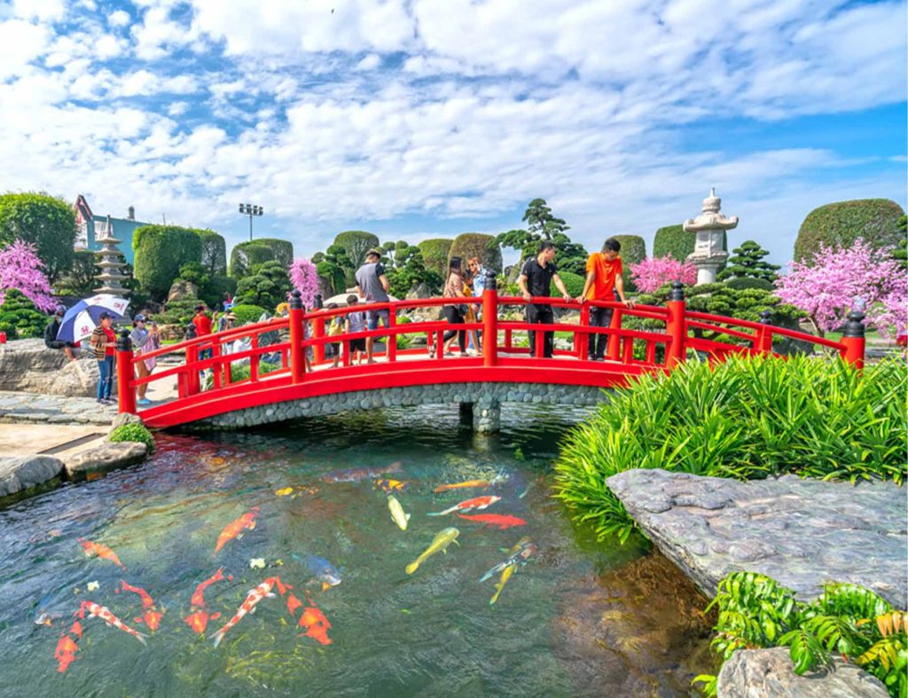 Công viên cá Koi RinRin Park mang đậm phong cách Nhật Bản với khu vườn cây cảnh, hồ cá Koi rộng lớn và các tiểu cảnh độc đáo. Đây là địa điểm thư giãn lý tưởng cho cả gia đình, đặc biệt là những ai yêu thích văn hóa Nhật.