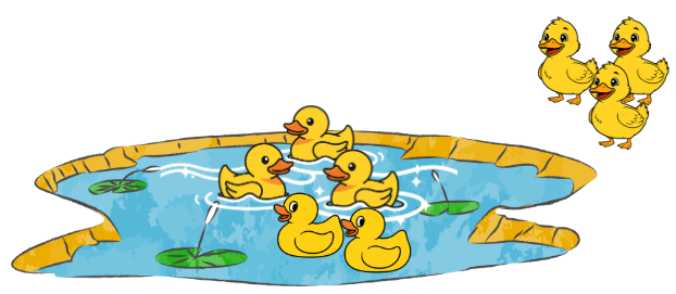 Bài 1: Một đàn vịt có 5 con ở dưới ao và 3 con trên bờ. Hỏi đàn vịt có tổng cộng bao nhiêu con?